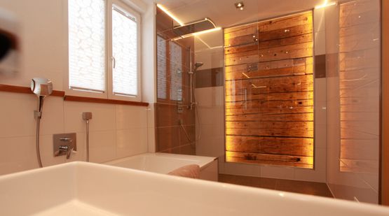 Verlegung von extrem großflächigen Fliesenplatten, bis zu 1m². Weniger Fugen, leichter zu reinigen.